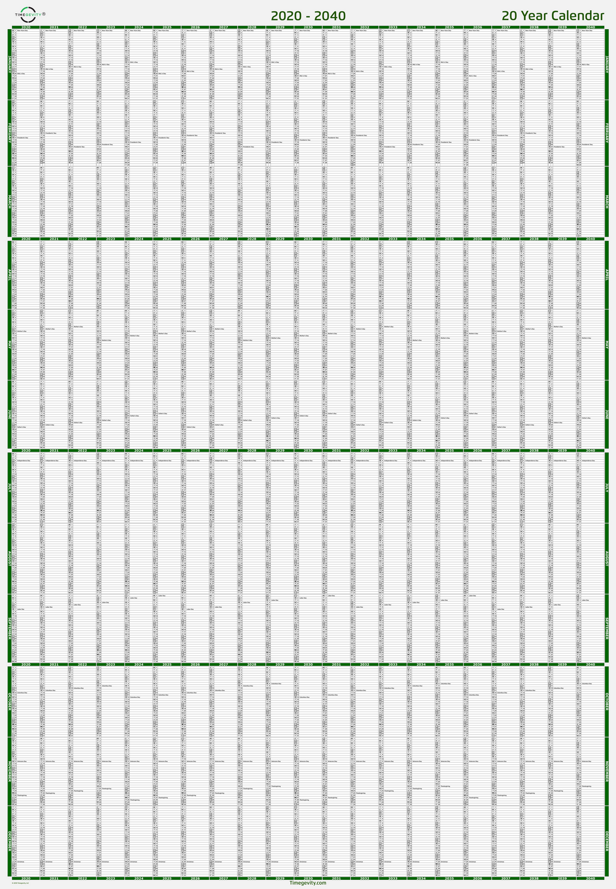 20 Year Calendar (2020 2040) โ Timegevity