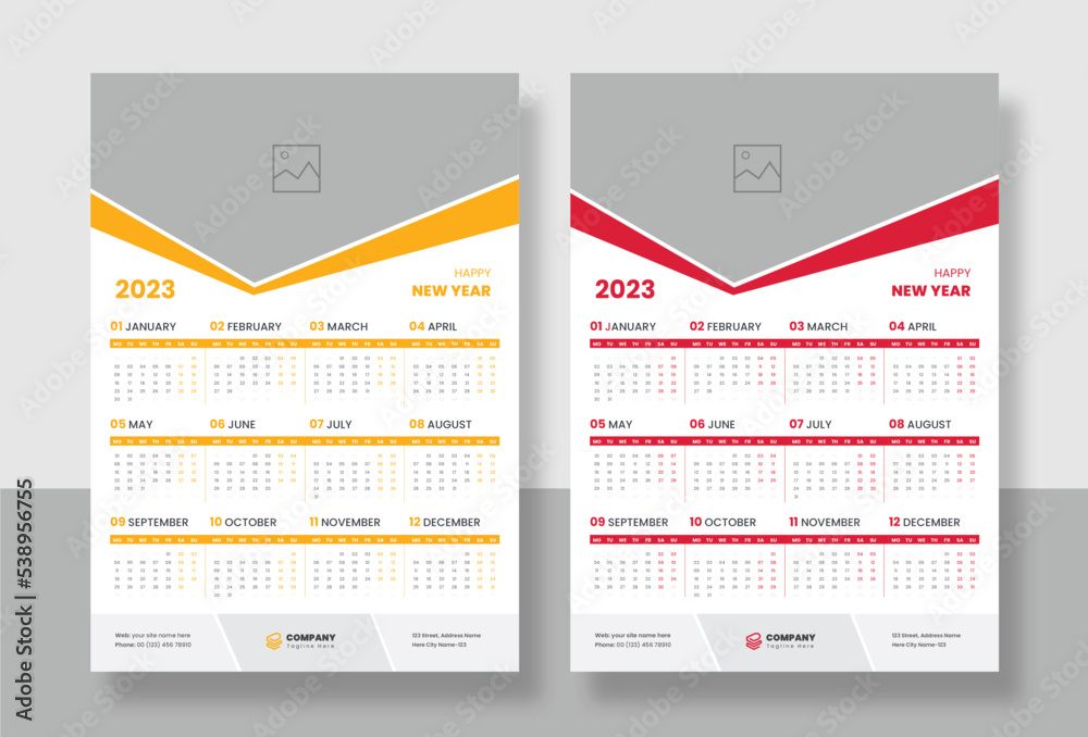 One Page Wall Calendar 2023, editable illustrator vector file